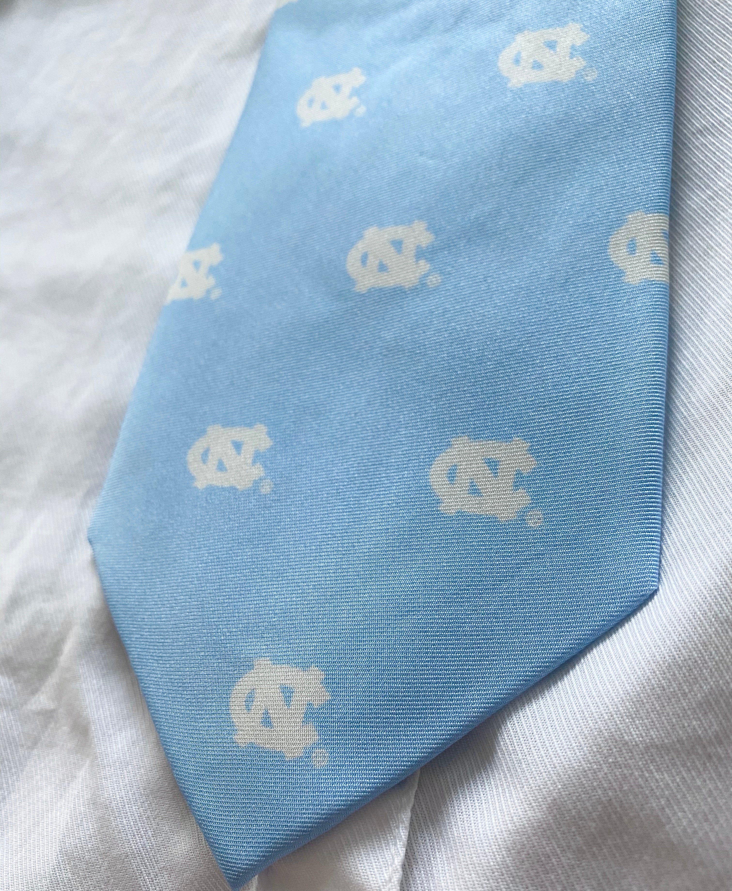 This UNC Prep Tie is the perfect way to support the Tar Heels on even fomal occasions! Perfect for work, banquets, or any formal event! The pattern features a Carolina Blue background color with small white UNC interlocking emblems. Pick one up as the perfect gift for your favorite Tar Heel fan or as a classy addition to your wardrobe!